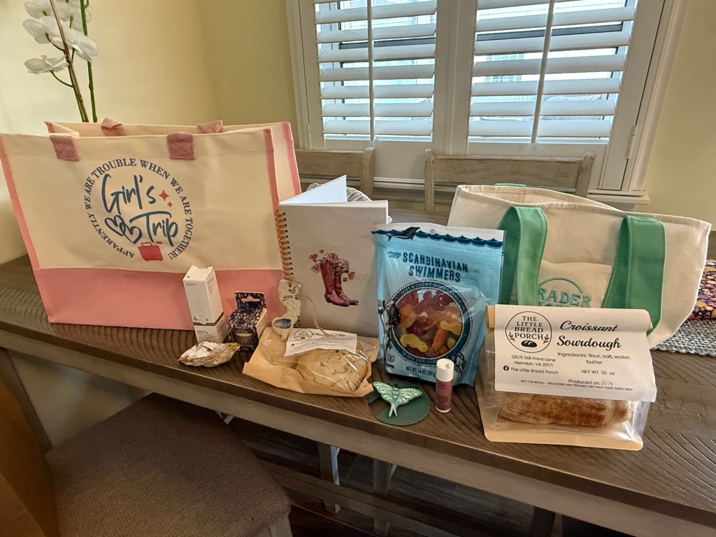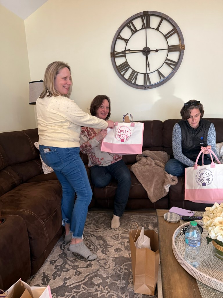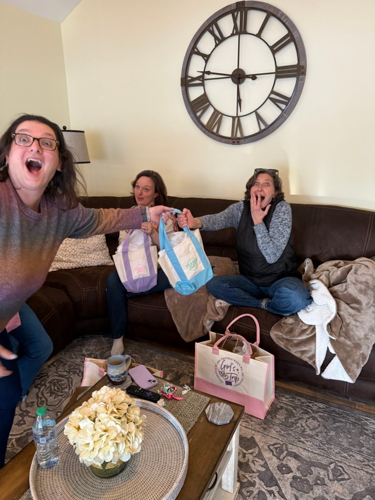 Back at the house, we did something that might end up being one of my favorite traditions: a “favorite things” exchange. Each of us brought small things we love — simple, thoughtful pieces of our everyday lives — and shared them with each other. It was such a perfect reflection of who we are now, layered on top of who we’ve always been. I left with a bag full of fun, meaningful little treasures… but more than that, I left with a full heart.