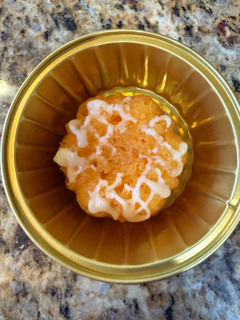 We ended the night with Cornbread Fried Ice Cream featuring buttermilk pie bits. The staff also brought out a special “Chess Pecan Pie” with a candle for Eric’s birthday—which he was lucky enough to enjoy again for breakfast this morning! To top it off, they sent us home with two mini Orange Blossom Bundt Cakes made by the chef’s mom.